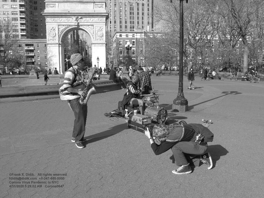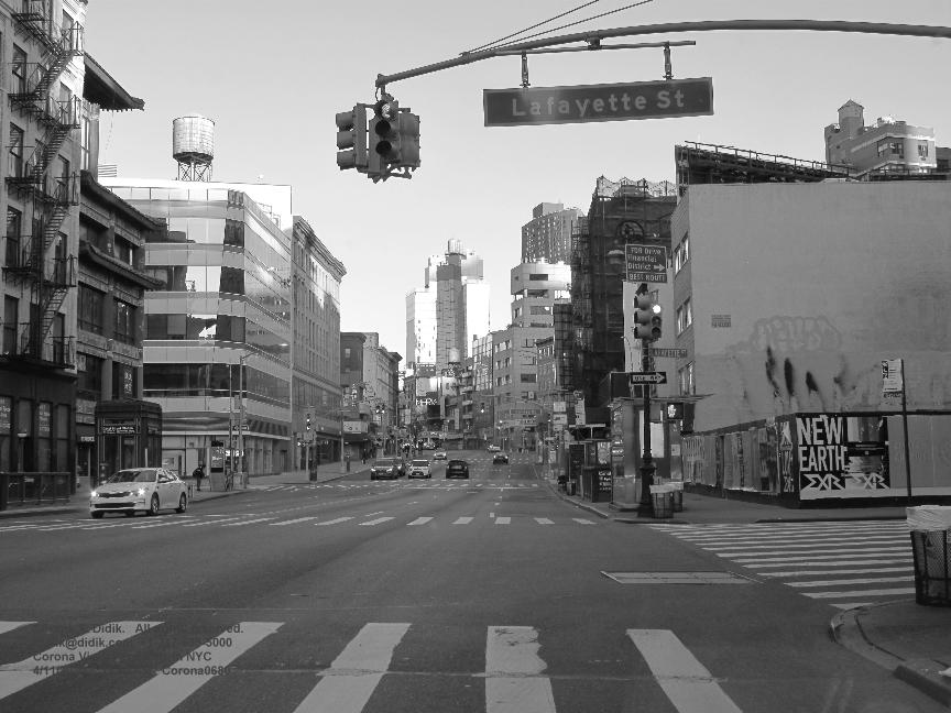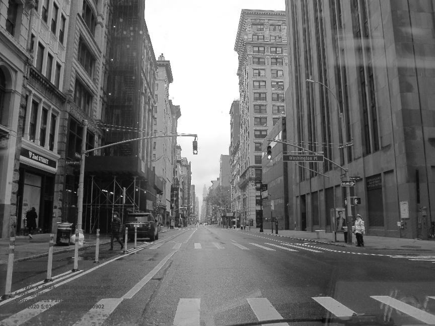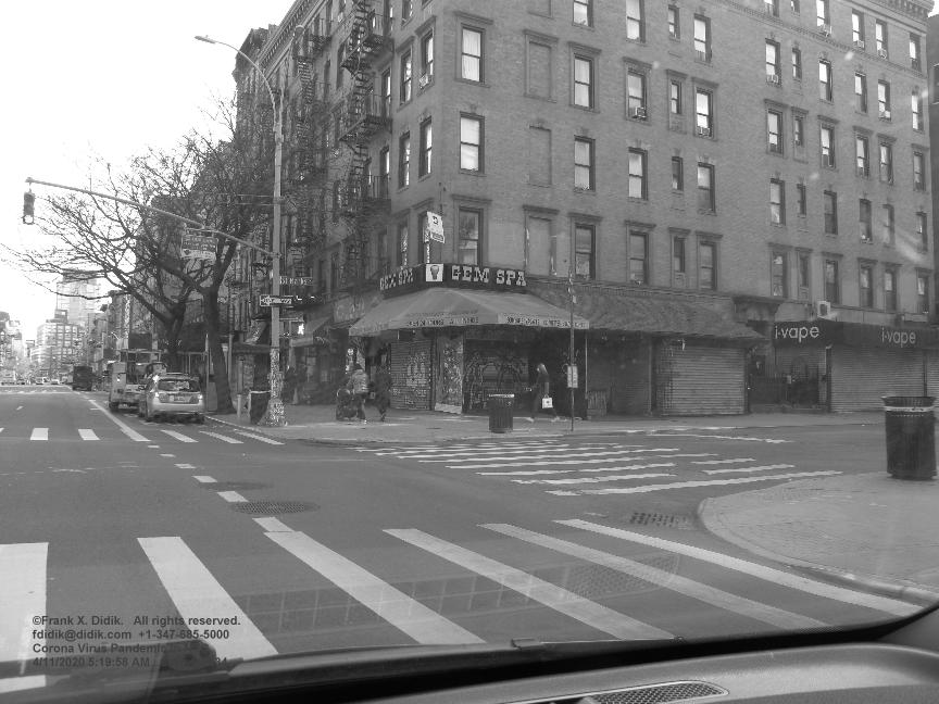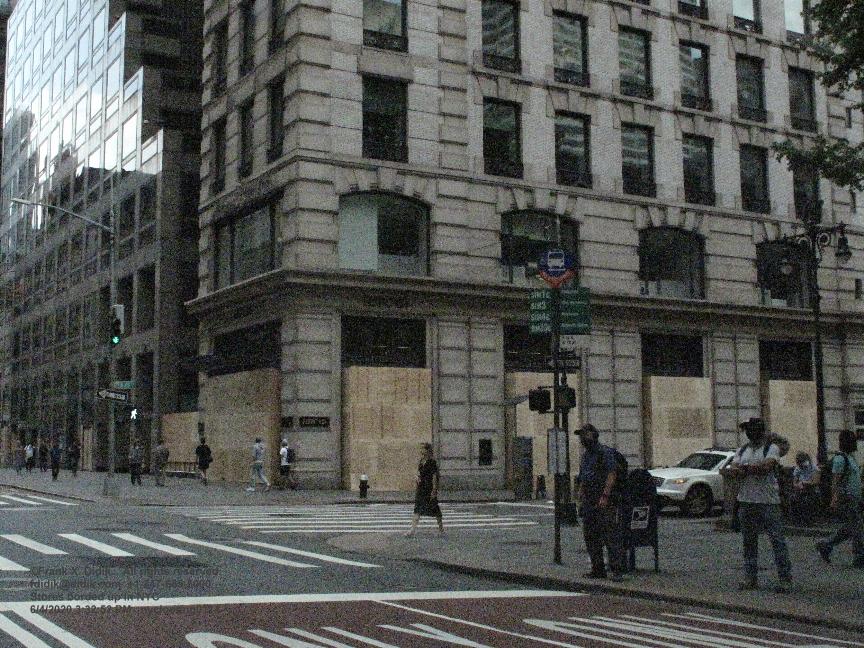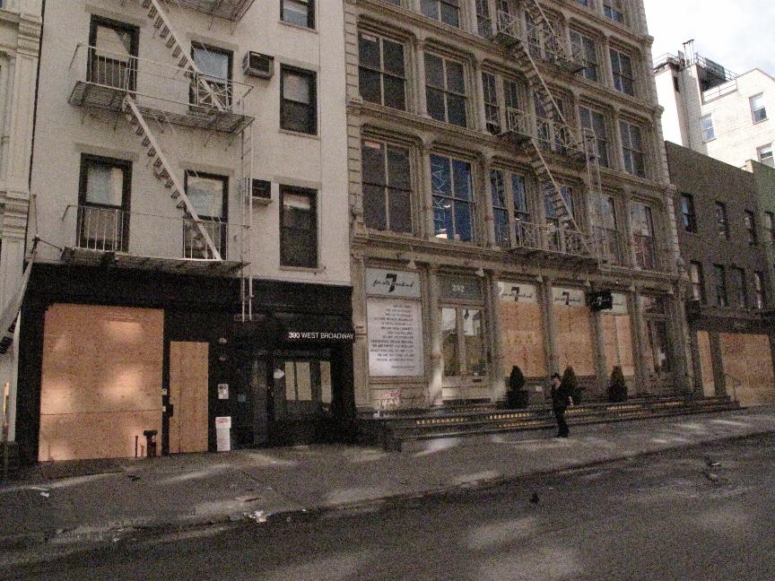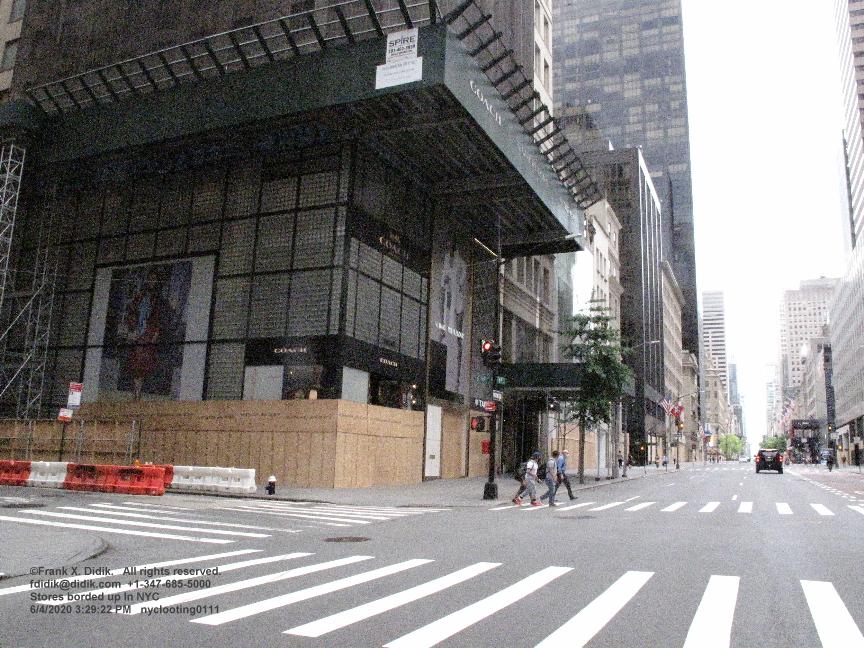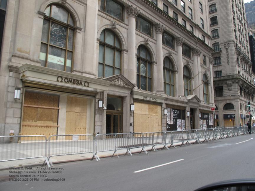 camera store on West Broadway, boarded up to prevent looting and destruction. |